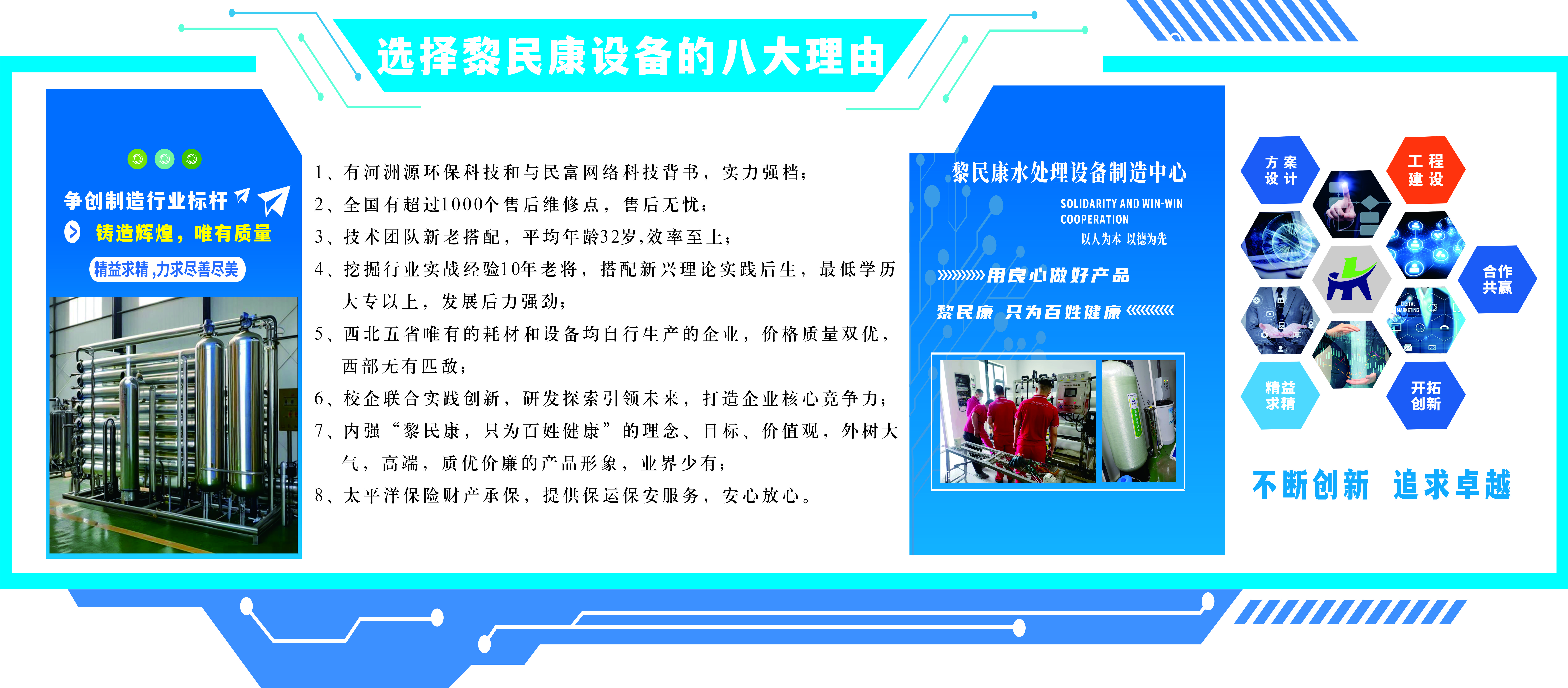 黎民康水處理設備與水處理耗材均自行生產,西北五省僅有的一家耗材和設備均自行生產的企業,價格質量雙優,消費者買的實惠,用的放心! ...